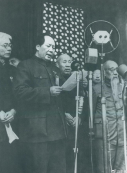 ▲開(kāi)國(guó)大典。1949年10月1日,毛澤東在天安門(mén)城樓上莊嚴(yán)宣告:中華人民共和國(guó)成立了!
