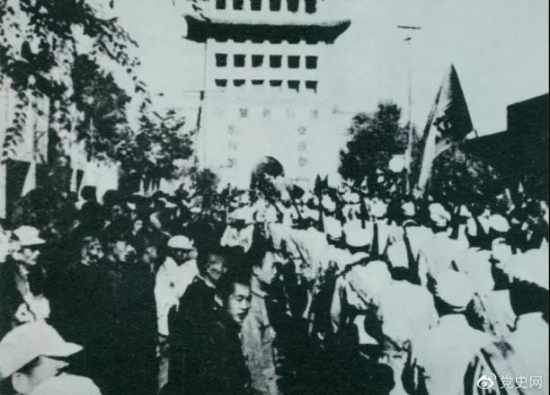 ▲1949年8月,蘭州解放。圖為第一野戰(zhàn)軍開進(jìn)蘭州市區(qū)。